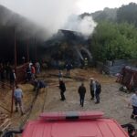 İtfaiye ekiplerince söndürülen yangında, ahırdaki 170 küçükbaş telef oldu, alevlerin sıçradığı samanlıktaki 3 bin balya ot yandı.