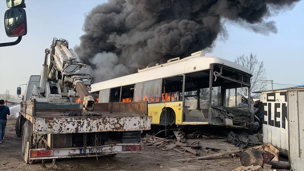 BURSA (AA) – Bursa'da bir geri dönüşüm tesisinde hurda halindeki 6 otobüs yandı.