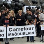 Toplanan kalabalık, basın açıklamasının ardından yanlarında getirdikleri siyah balonları uçurdu.