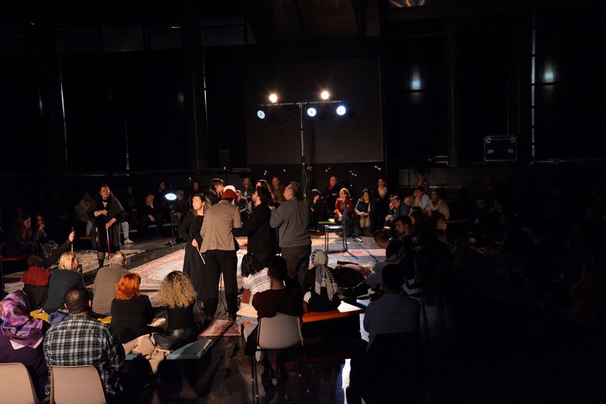 Üsküp Türk Tiyatrosu oyuncularının seyirciler arasında sahnelediği oyun, Bursalı sanatseverlere farklı bir deneyim yaşattı.