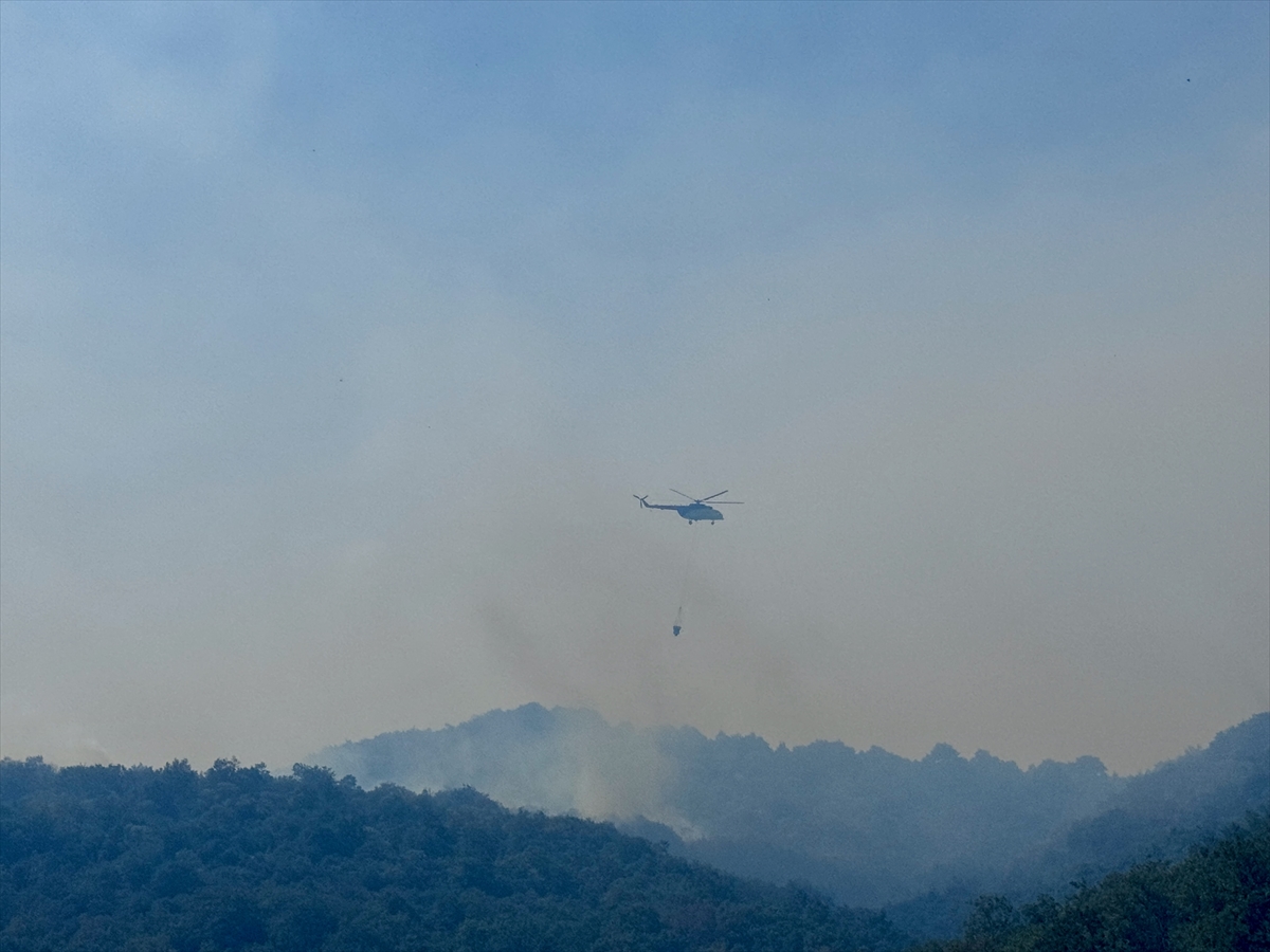 Yangının kontrol altına alınması için ekiplerin havadan ve karadan başlattığı müdahale sürüyor.