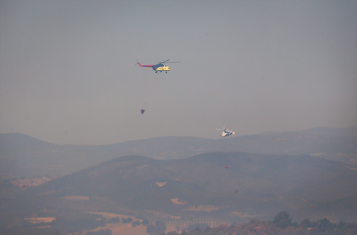 BURSA (AA) – Bursa'nın İznik ilçesinde makilik alanda çıkan yangına havadan ve karadan müdahale ediliyor.