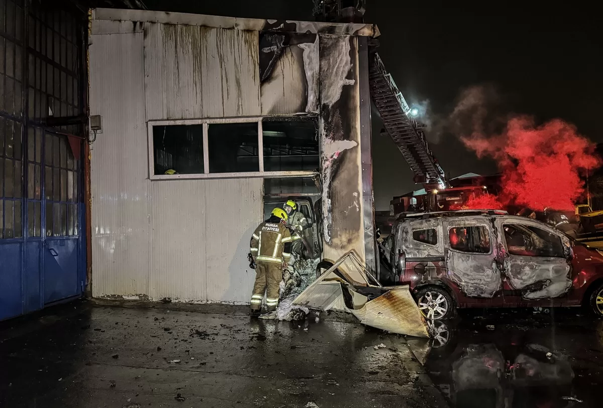 Ekiplerin yaklaşık bir saat süren müdahalesiyle tamirhanede çıkan yangın söndürüldü.
