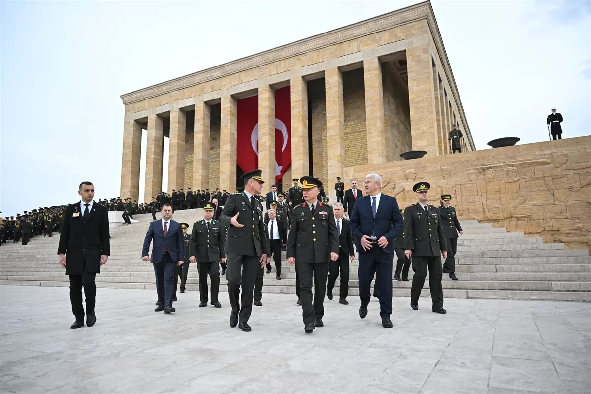 Kara Harp Okulu Komutanı Tümgeneral Gültekin Yaralı başkanlığındaki heyet, Aslanlı Yol'dan yürüyerek Atatürk'ün mozolesine çelenk bırakıp, saygı duruşunda bulundu.