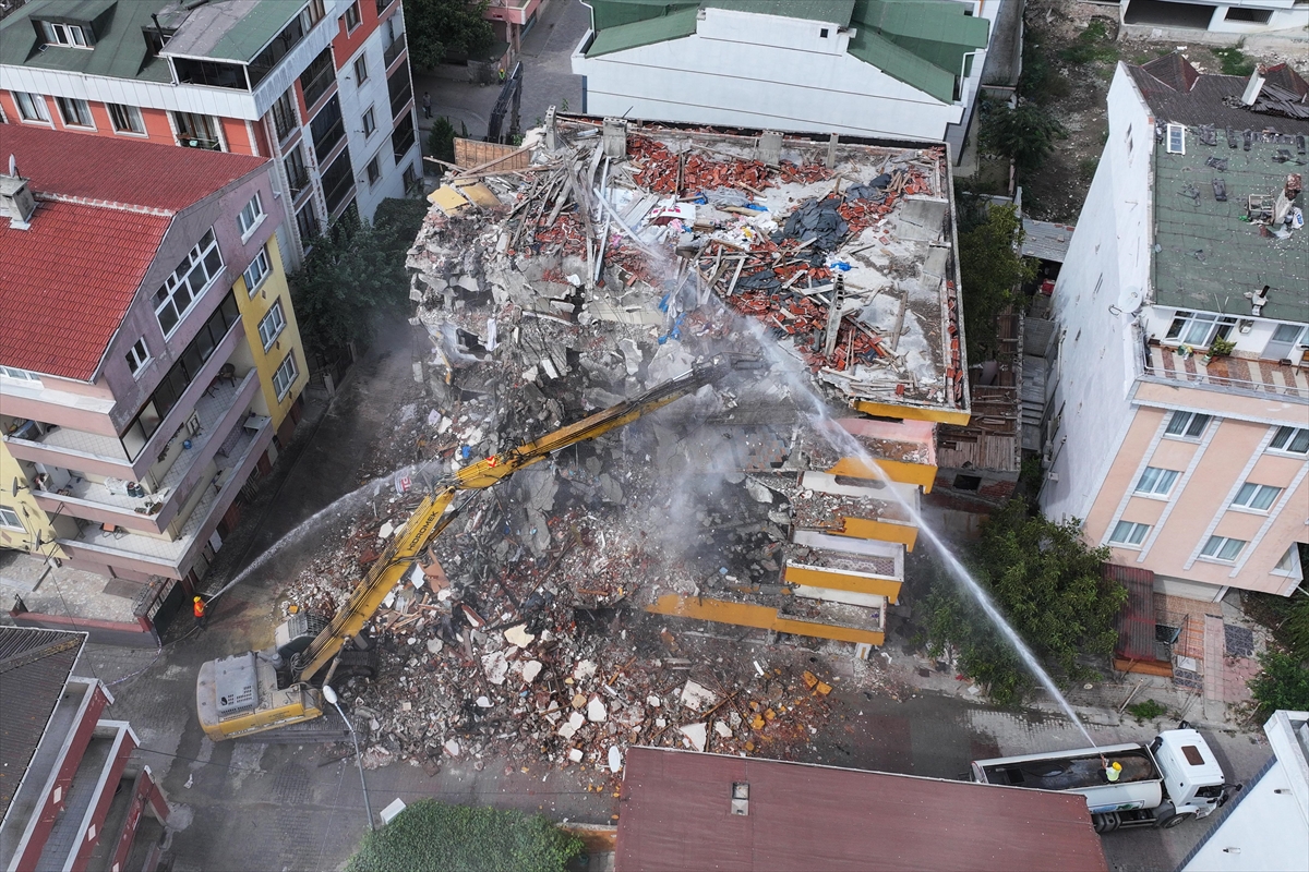 Ulus Mahallesi’nde 12 bağımsız bölümden oluşan 5 katlı riskli yapının yıkım çalışmalarını, Büyükçekmece Belediye Başkanı Hasan Akgün de takip etti.