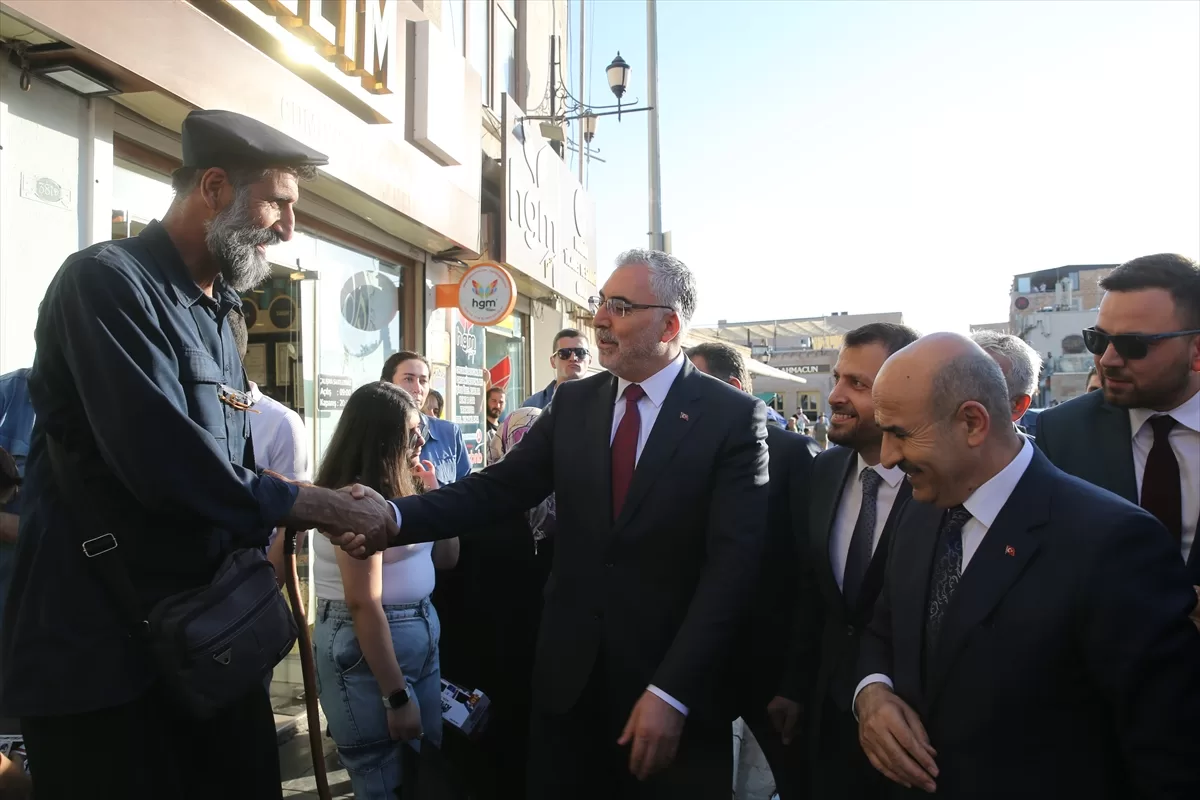 Bakan Işıkhan, ardından Mardin Valisi Mahmut Demirtaş ve beraberindekilerle Merkez Artuklu ilçesine geçerek Birinci Cadde'de bulunan esnafı ziyaret etti.