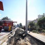 Toplumsal olaylara müdahale aracının (TOMA) da destek verdiği söndürme çalışmalarıyla yangın kontrol altına alındı.