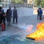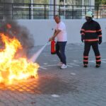 Daha sonra okul bahçesinde yangın tavasında oluşturulan ateş, itfaiye ekiplerinin kontrolünde öğretmen ve öğrenciler tarafından yangın tüpüyle söndürüldü.