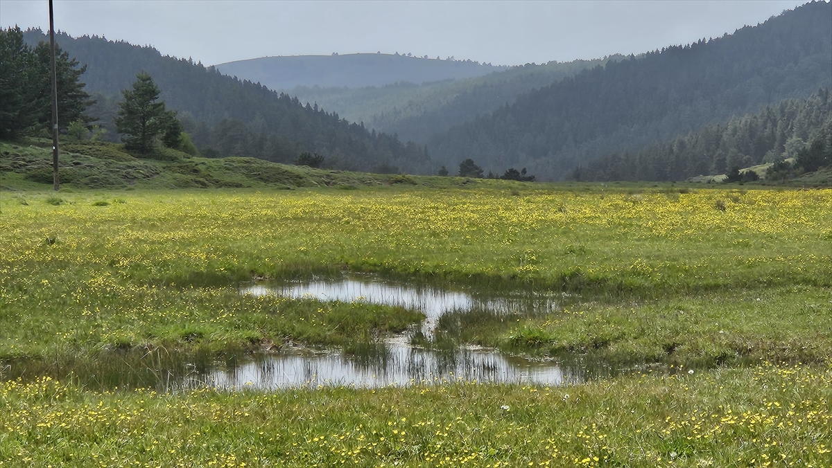 Yemyeşil yaylalarda açan sarı çiçekler, seyrine doyumsuz manzaralar oluşturdu.