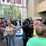 İsrail yanlısı grubun üyeleri tepkilerin ardından güvenlik görevlilerinin de telkinleriyle kampüs dışına çıkarıldı.