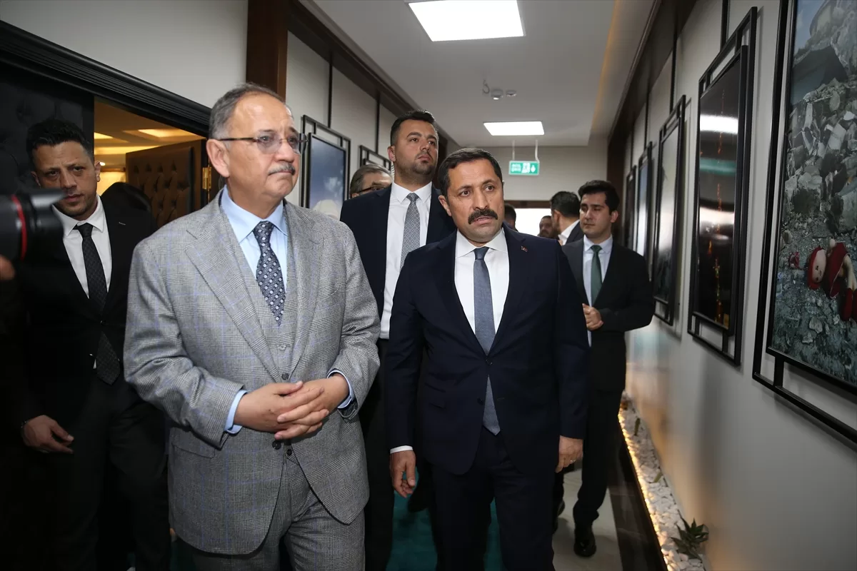 Bakan Özhaseki, ardından Hatay Büyükşehir Belediye Başkanı Mehmet Öntürk'ü EXPO Kisecik'teki makamında ziyaret etti.