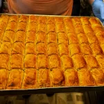 "İçinde ceviz, fındık, köy tereyağı ve köy yumurtası var. El açması hamurumuz var. Ceviz, fındık ve şeker ekleyerek yapılıyor. Şerbetli baklavadan ayrılan en büyük özelliğimiz, çok hafif ve kuru olması. Şerbetli tatlılara göre şeker oranı az olduğu için çok tercih edilen, sevilen bir tatlı türü. Bayram önceleri çok fazla talep geliyor yurt içi ve dışından."