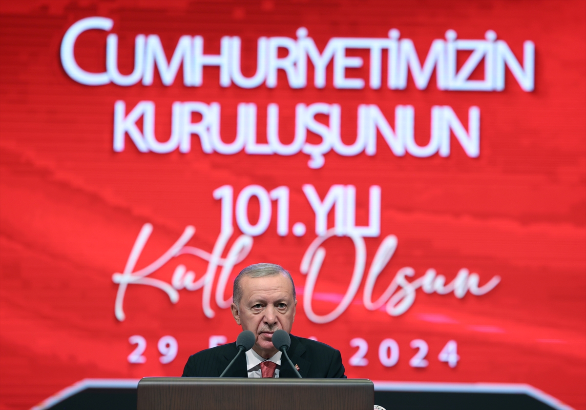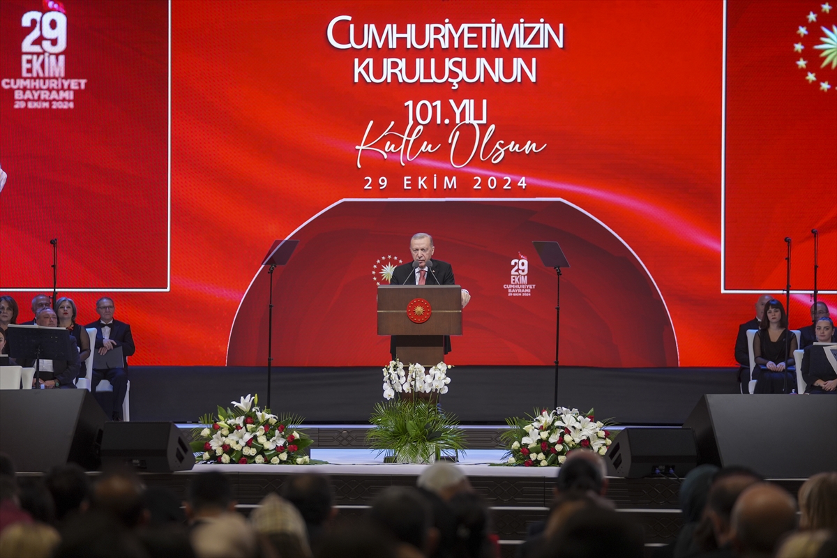 Erdoğan, Cumhurbaşkanlığı Külliyesi Sergi Salonu'nda düzenlenen 29 Ekim Özel Programı'nda konuştu.