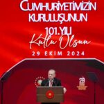 "Nevzuhur devletlerin, köksüz toplumların, kendi çıkarları dışında hiçbir insani değeri önemsemeyen küresel tröstlerin anlamadıkları bir hakikat var. Bu hakikat, Türkiye Cumhuriyeti'nin, bizim binlerce yıllık devletler silsilemizin son temsilcisi olduğudur. Onlar sanıyorlar ki bu milletin devleti sadece 101 yıllık geçmişe sahiptir. Halbuki Cumhuriyetimiz 101 yıl önce yeni bir devlet olarak değil, yeniden başlangıcın sembolü bir rejim olarak kurulmuştur. Ordumuz başta olmak üzere devletimizin omurgasını oluşturan kurumlarımızın kuruluş yıllarının yüzlerce, hatta binlerce yıl öteye uzanması bu hakikatin en açık ifadesidir.