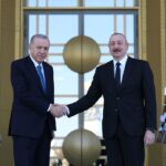 Daha sonra Erdoğan ve Aliyev, merdivenlerde Türkiye ve Azerbaycan bayrakları önünde fotoğraf çektirdi.