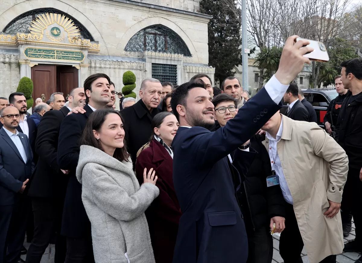 Cami çıkışında yaptığı açıklamaların ardından basın mensuplarıyla bayramlaşan Erdoğan, gazetecilere çikolata ve börek ikram ettikten sonra günün anısına fotoğraf çektirdi.
