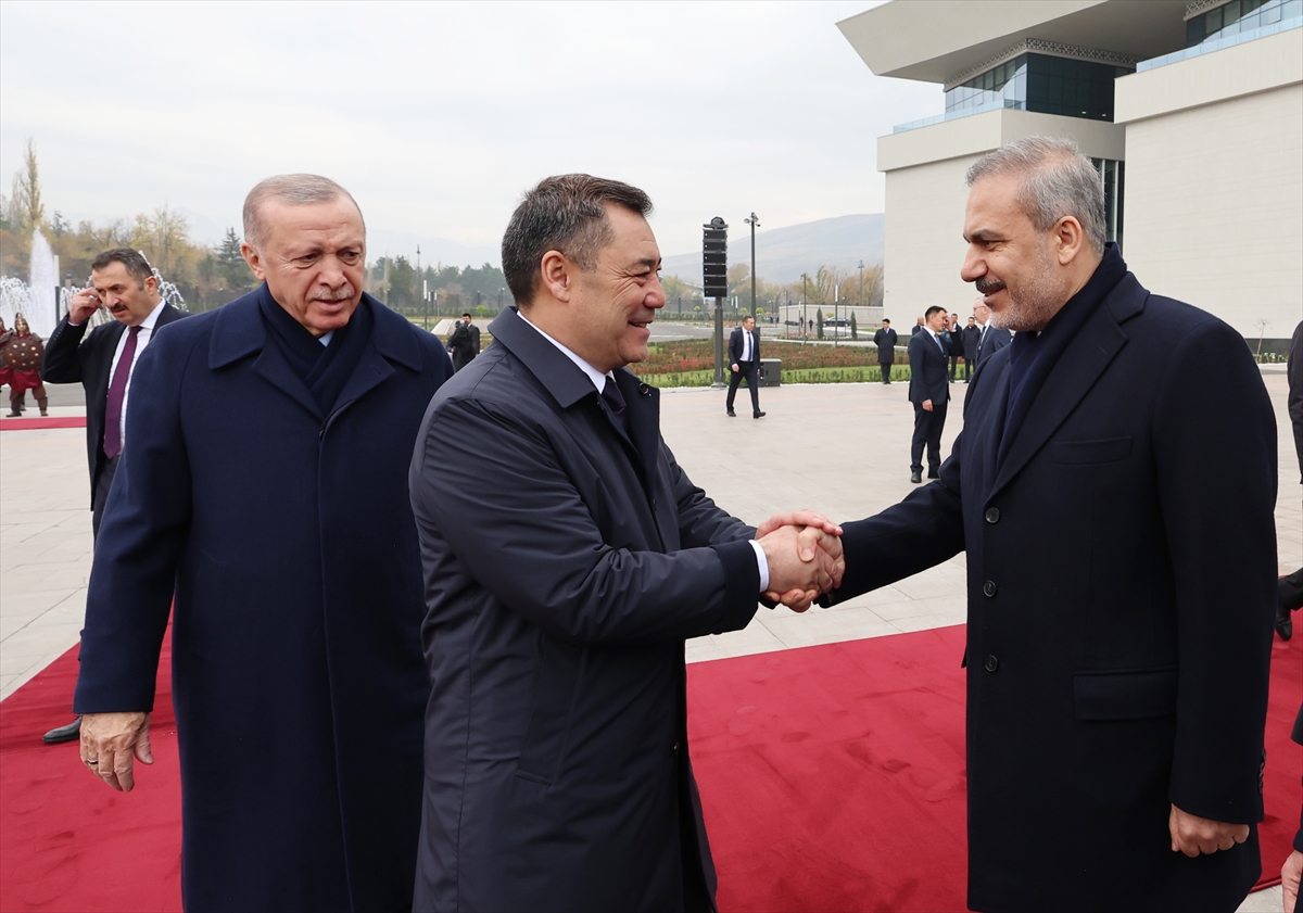 BİŞKEK (AA) – Cumhurbaşkanı Recep Tayyip Erdoğan, Türk Devletleri Teşkilatı (TDT) Devlet Başkanları Konseyi 11. Zirvesi'ne katılmak üzere bulunduğu Kırgızistan'da, Cumhurbaşkanı Sadır Caparov tarafından resmi törenle karşılandı.