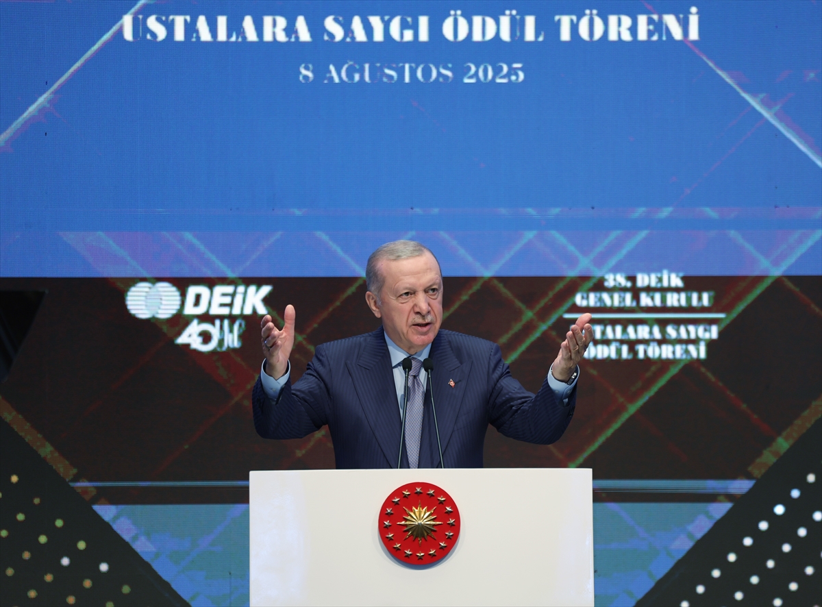 Dış Ekonomik İlişkiler Kurulu (DEİK) 38. Olağan Mali Genel Kurulu ve Ustalara Saygı Ödül Töreni Programı'nda konuşan Erdoğan, katılımcılarla birlikte olmaktan, 40'ıncı yıl heyecanını paylaşmaktan büyük memnuniyet duyduğunu belirterek, genel kurulun ülke, millet ve ülke ekonomisi için hayırlara vesile olmasını diledi.