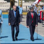 Erdoğan ve Kavelashvili, merdivenlerde Türkiye ve Gürcistan bayrakları önünde tokalaşarak basın mensuplarına poz verdi.