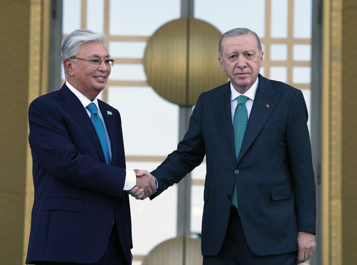 İkili görüşmeye geçen Erdoğan ve Tokayev, görüşmelerin ardından Türkiye ile Kazakistan Yüksek Düzeyli Stratejik Konseyinin beşinci toplantısına başkanlık edecek.