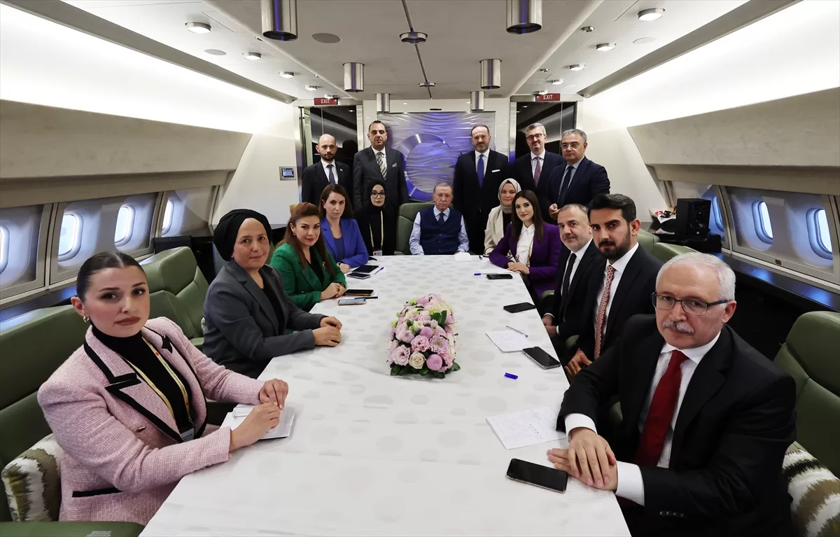 Erdoğan, Türk Devletleri Teşkilatı Devlet Başkanları Konseyi 10. Zirvesi'ne katıldığı Kazakistan'dan dönüşünde uçakta gazetecilerin sorularını yanıtladı.
