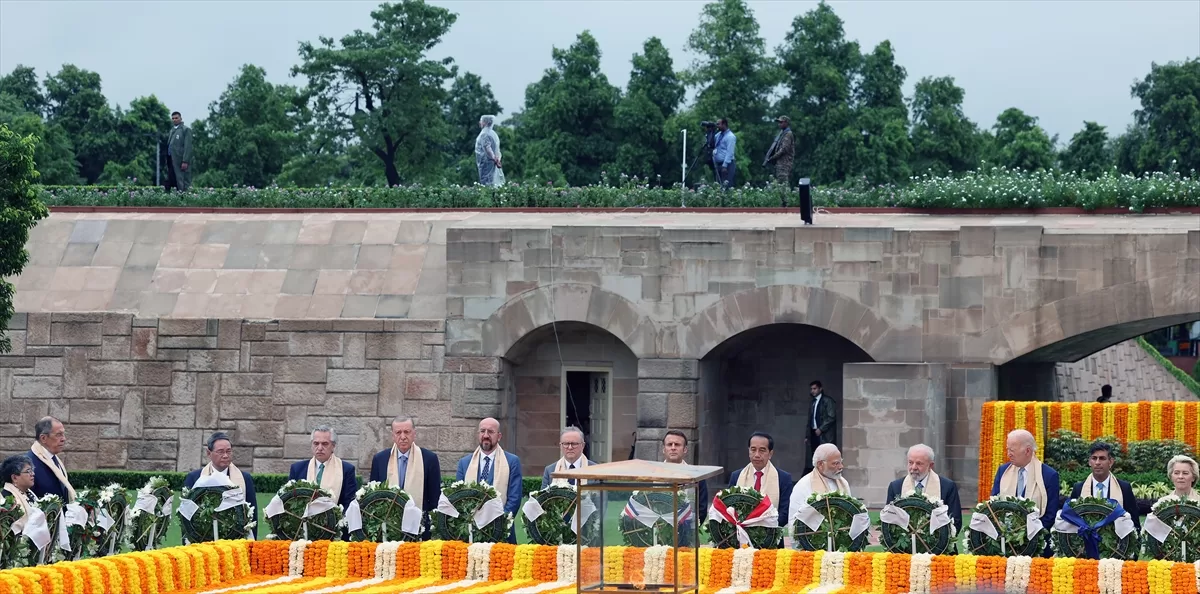 Cumhurbaşkanı Erdoğan, Hindistan'ın başkenti Yeni Delhi'de düzenlenen zirvenin ikinci gününde G20 ülkelerinin liderleriyle birlikte Rajghat Anıt Mezarı'na ziyarette bulundu.