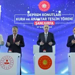 Cumhurbaşkanı Erdoğan, Harran Üniversitesi Spor Salonu'nda düzenlenen Deprem Konutları Kura ve Teslim Töreni'ne katıldı.