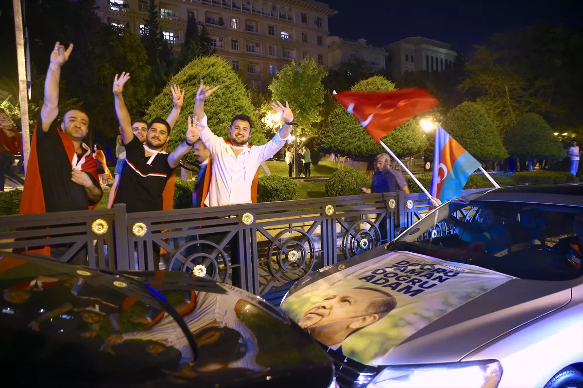 BAKÜ (AA) – Cumhurbaşkanı Recep Tayyip Erdoğan'ın, Cumhurbaşkanı Seçimi'nin ikinci turunda elde ettiği başarı, Azerbaycan'da coşkuyla kutlandı.