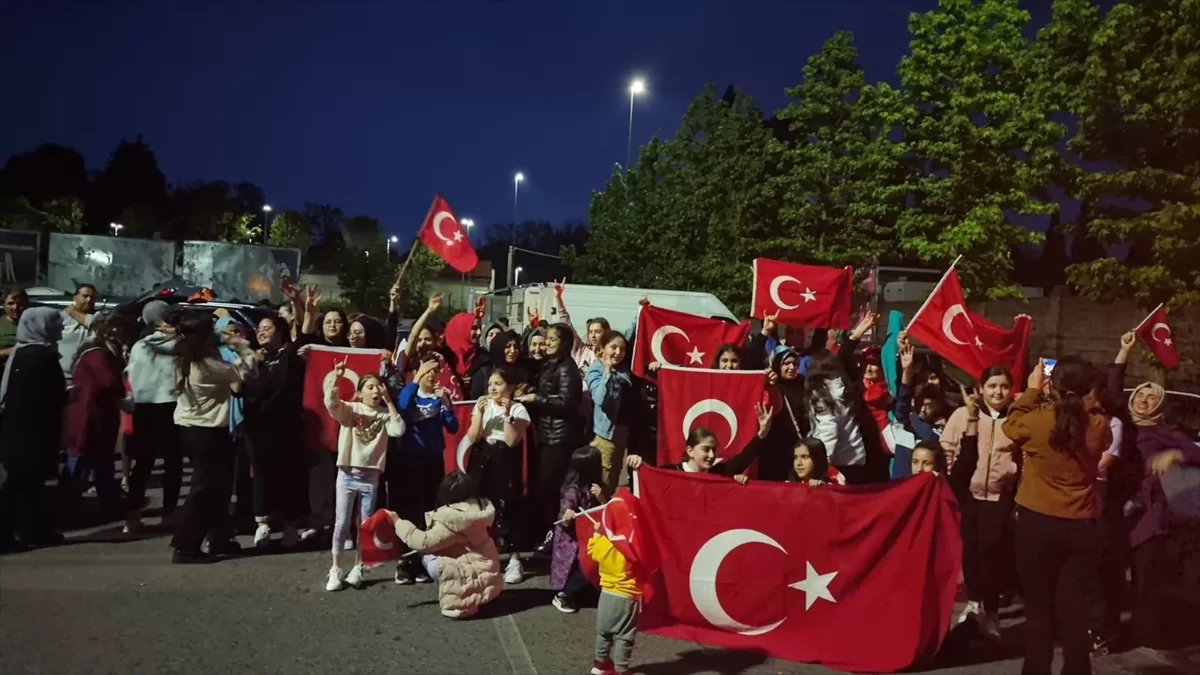 Türk bayrakları ve Erdoğan posterleri açan vatandaşlar, halaylarla Cumhurbaşkanı Erdoğan'ın yeniden seçilmesini kutladı.