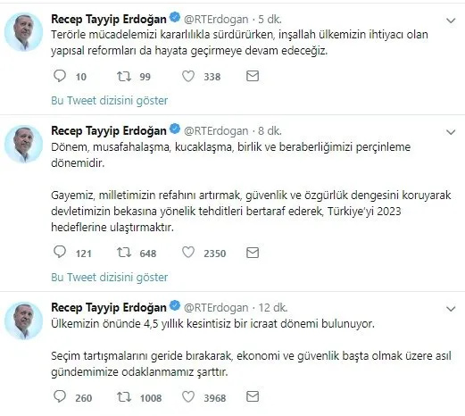 İşte Erdoğan’ın Twitter’deki açıklamaların;