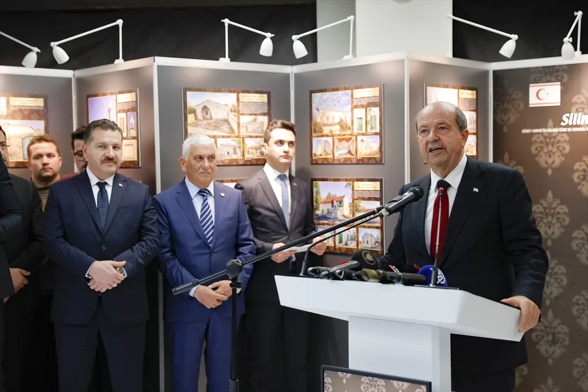 Türkiye Belediyeler Birliği'nde düzenlenen, 1974 Kıbrıs Barış Harekatı sonrasında Güney Kıbrıs'ta kalan Osmanlı-Türk eserlerinin fotoğraflarının yer aldığı "İzler Silinmeden" sergisi, KKTC Cumhurbaşkanı Ersin Tatar ve Cumhurbaşkanı Yardımcısı Yılmaz'ın katılımıyla açıldı.