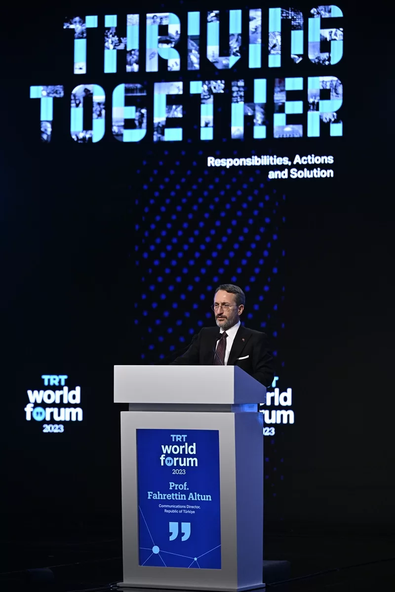 Altun, "Birlikte Gelişmek: Sorumluluklar, Eylemler ve Çözümler" temasıyla Hilton İstanbul Bomonti Hotel & Conference Center'da bu yıl 7'ncisi düzenlenen "TRT World Forum 2023"ün "Dijital Çağda Kamu Yayıncılığı: Zorluklar ve Fırsatlar" başlıklı oturumunun açılış konuşmasını yaptı.