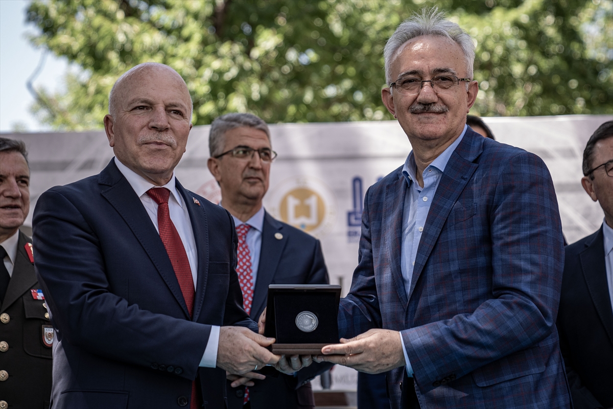 Konuşmaların ardından Şahin, protokol üyelerine birer hatıra parası hediye edip hatıra fotoğrafı çektirdi.