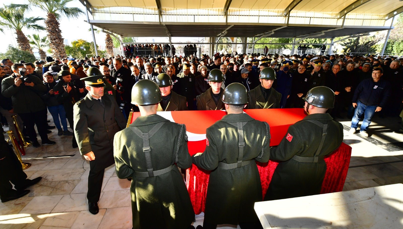 10 ili etkileyen deprem felaketinin Hatay’da askerlik yaparken yaşamdan ayırdığı İzmirli piyade er Eren Taşkın için Karşıyaka Beşikçioğlu Camii’nde tören düzenlendi. Törene şehidin annesi Dursune Taşkın ile kız kardeşi Ece Taşkın’ın yanı sıra İzmir Valisi Yavuz Selim Köşger, İzmir Büyükşehir Belediyesi Başkan Vekili Mustafa Özuslu, CHP İzmir Milletvekili Kamil Okyay Sındır, Ege Ordusu Komutanı Korgeneral Kemal Yeni, İzmir İl Emniyet Müdürü Mehmet Şahne, siyasi parti temsilcileri, yurttaşlar ve şehidin yakınları katıldı. Eren Taşkın’ın cenazesi Kadifekale Şehitliği’ne defnedildi.