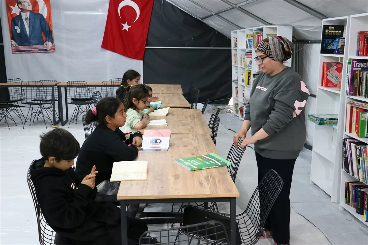 HATAY (AA) – MUSTAFA GÜNGÖR – Hatay'ın İskenderun ilçesinde depremde evi hasar gören Türkçe öğretmeni Emine Menek, ailesiyle kaldığı çadır kentte depremzede öğrencilere gönüllü ders veriyor.