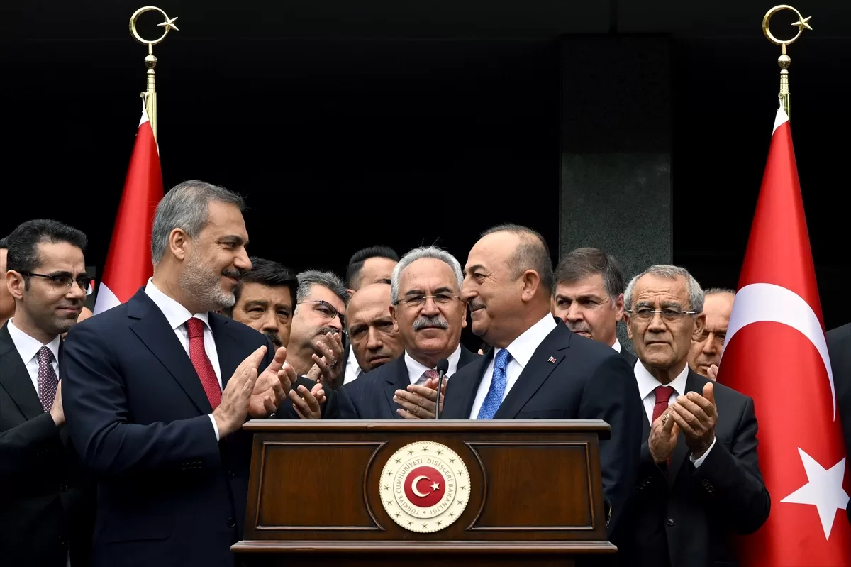 Çavuşoğlu, şimdi bayrağı devretme sırası olduğunu dile getirerek, "8 yıl 6 ay 13 gün taşıdığım Dışişleri Bakanlığı bayrağını değerli kardeşim Hakan Fidan'a devrediyorum. Hakan kardeşim uluslararası ilişkilerin teorisi kadar pratiğine de hakim bir dava arkadaşımdır." ifadesini kullandı.