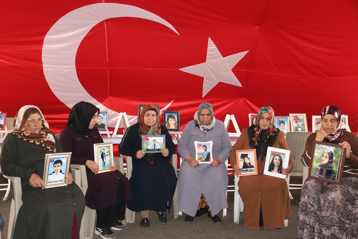 DİYARBAKIR (AA) – Dağa kaçırılan çocukları için eski HDP il binası önünde oturma eylemi yapan Diyarbakır anneleri, evlatlarına kavuşmak istiyor.