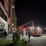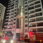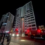 Mezopotamya Bulvarı'nda 15 katlı binanın 11. katındaki merdiven boşluğunda yangın çıktı.