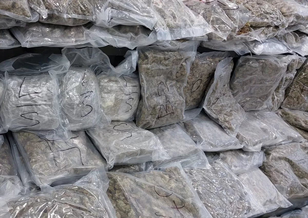 İş yerinde yapılan aramada 9 valiz içerisinde yaklaşık 100 kilogram esrar bulundu.