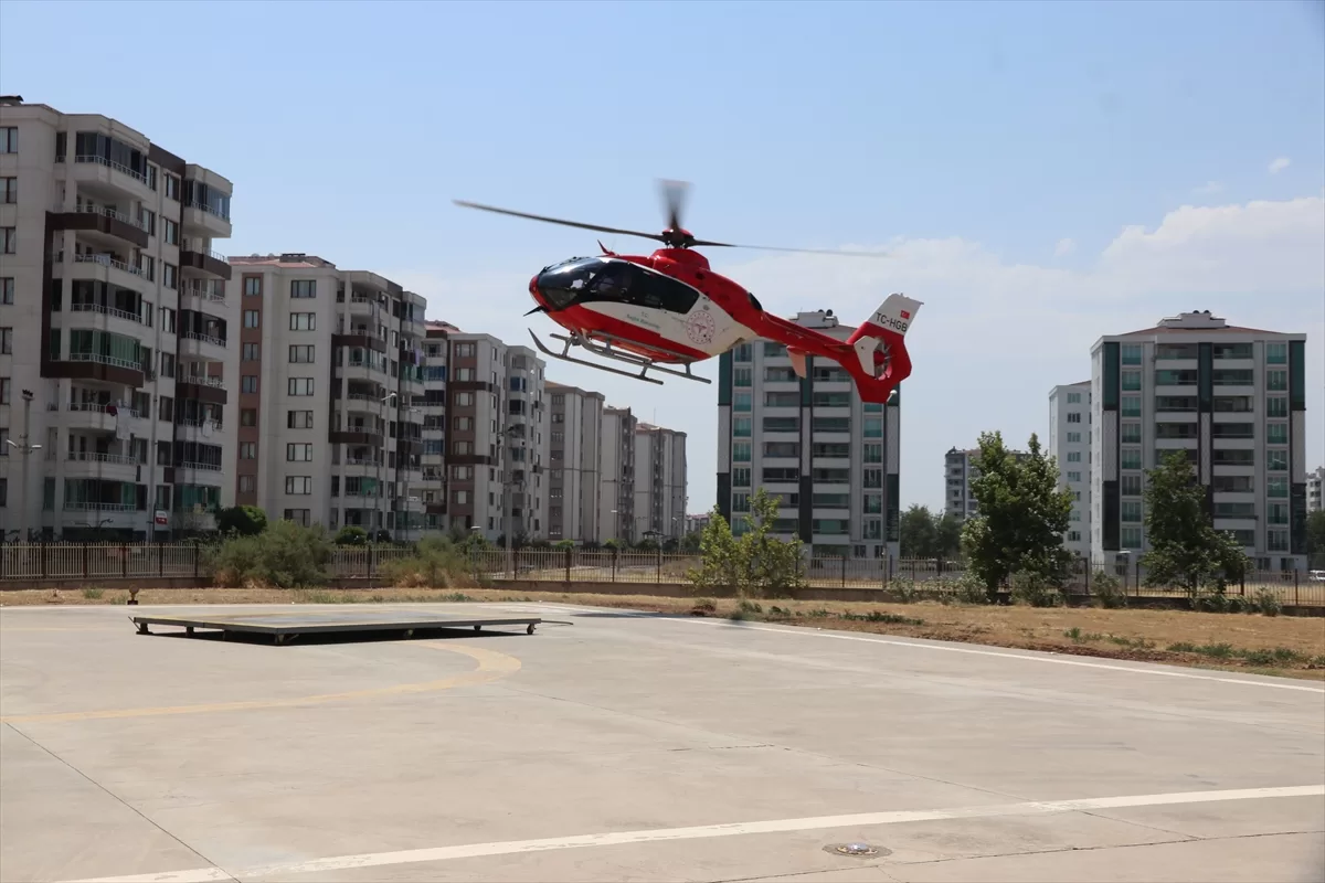 Hava ambulansıyla alınan çocuk, Diyarbakır Kadın Doğum ve Çocuk Hastalıkları Hastanesi helikopter pistine getirildi.