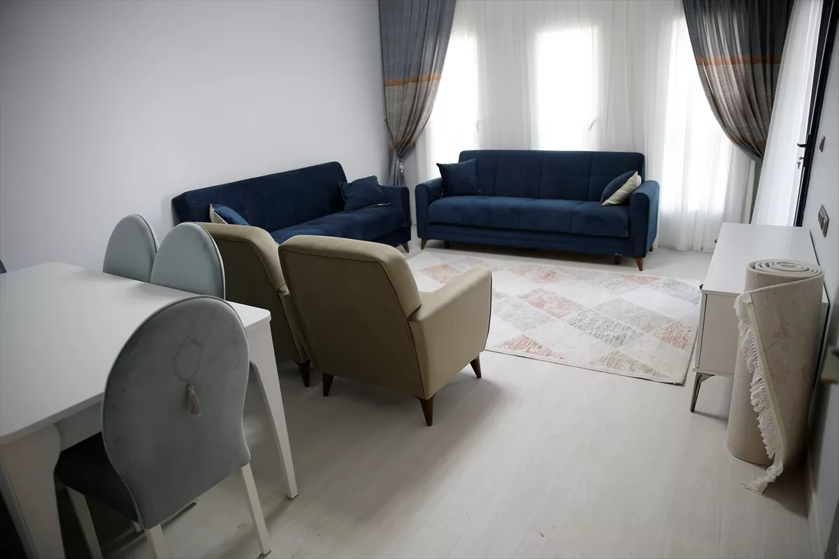 Kapısı, pencereleri, duş sistemi ve banyo ile mutfak mobilyaları yerleştirilen dairede oturma grubu, yatak odası, çocuk ve genç odası takımları da hazırlandı.