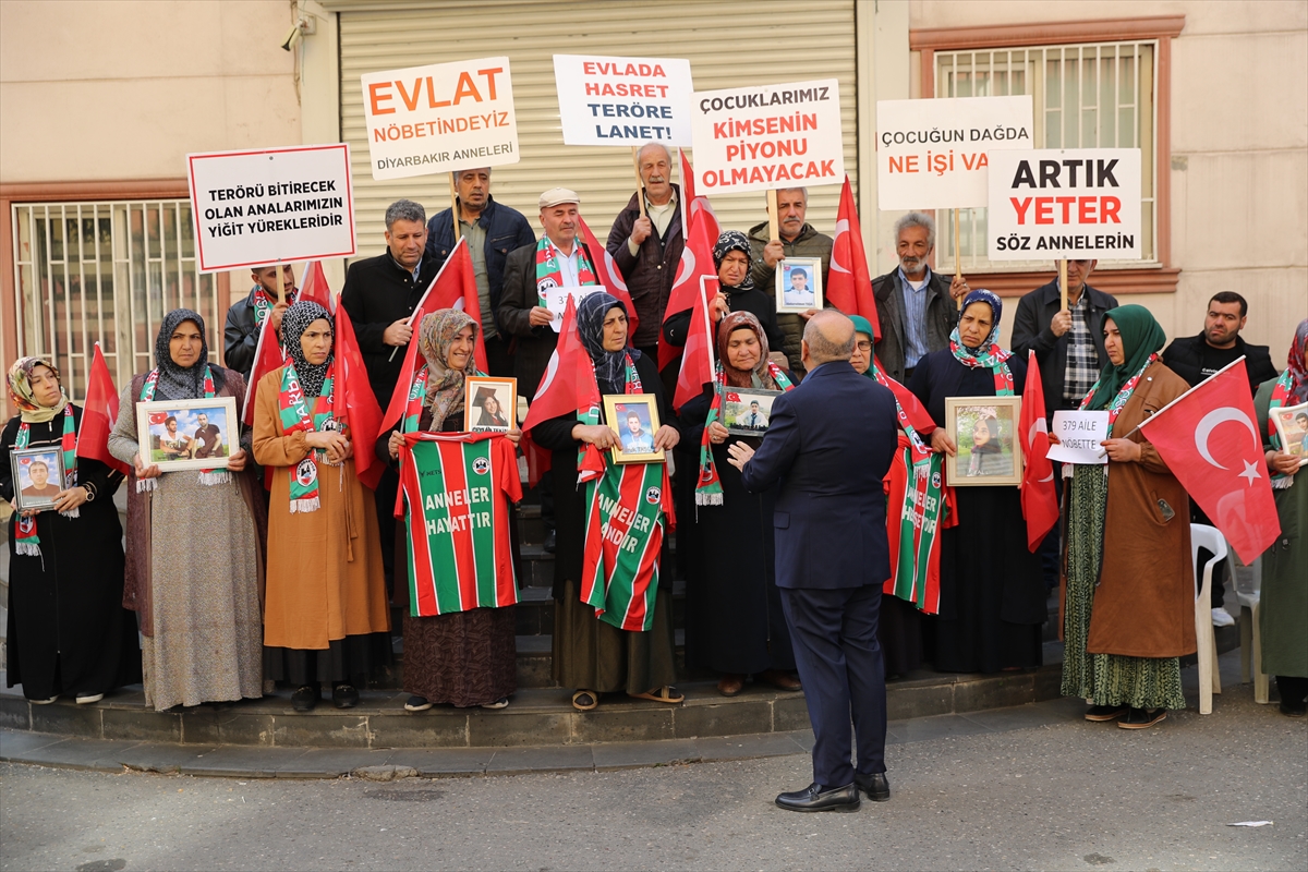 DİYARBAKIR (AA) – Diyarbakırspor Kulübü Başkanı Bedirhan Akyol, dağa kaçırılan çocukları için eski HDP İl Başkanlığı binası önünde evlat nöbeti tutan Diyarbakır annelerini ziyaret etti.