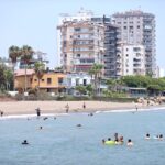 Bunaltıcı sıcakların devam ettiği kentte, bazı kişiler serinlemek için denize girdi.