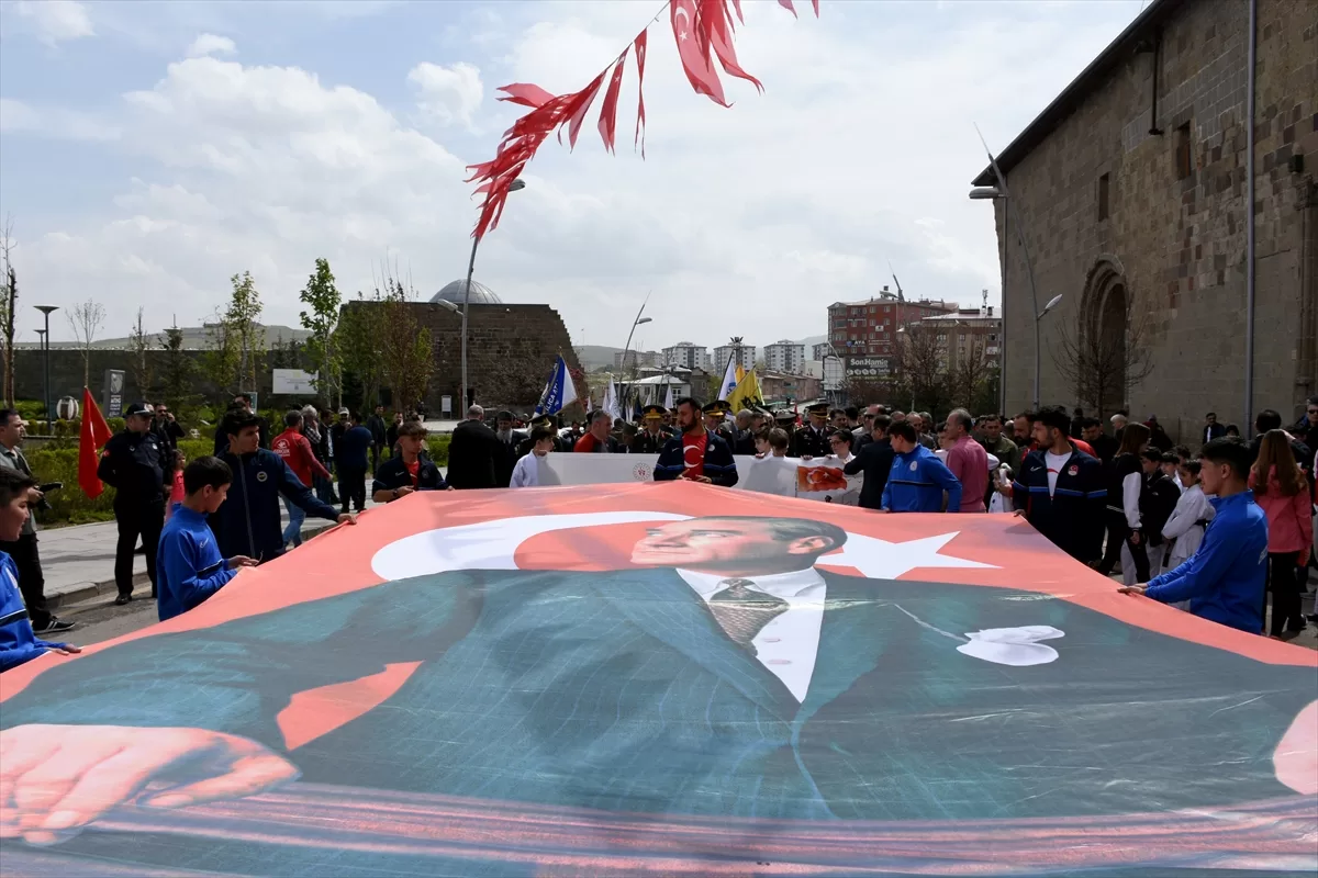 Saygı duruşunda bulunulması ve İstiklal Marşı'nın okunmasının ardından Çifte Minareli Medrese önünden Kent Meydanı'na kortej yürüyüşü yapıldı.