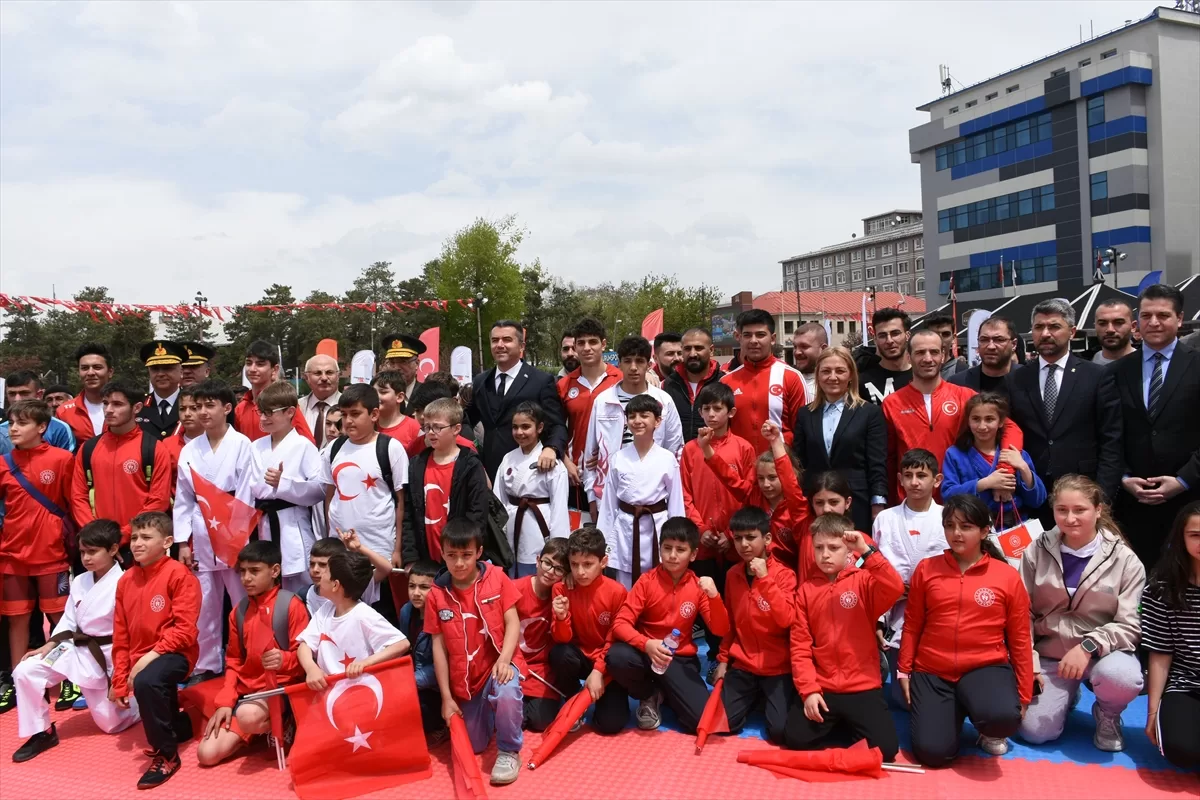 Ardından Merkez Kapalı Spor Salonu'nda düzenlenen şenlik programında, sporcular gösteri yaptı.