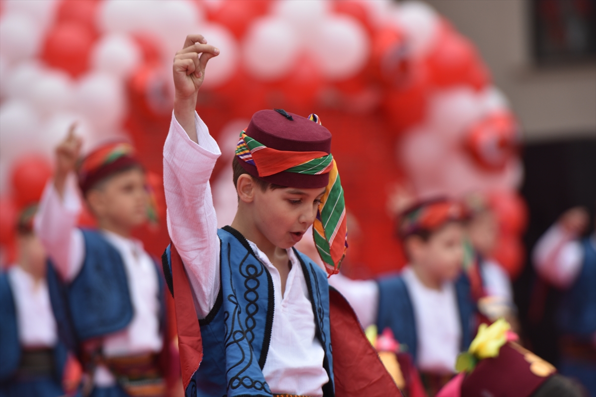 Öğrencilerin 23 Nisan'la ilgili şiirler okuduğu tören, çeşitli okulların halk oyunları ve sportif gösterilerinin ardından son buldu.