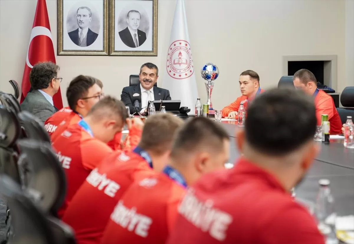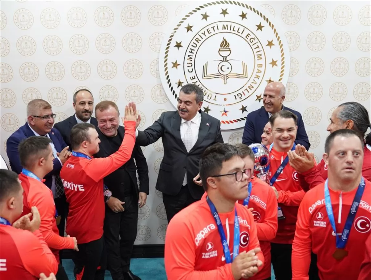 ANKARA (AA) – Milli Eğitim Bakanı Yusuf Tekin, İtalya'nın Padova kentinde düzenlenen Down Sendromlular Avrupa Şampiyonası finalinde Portekiz'i 2-1 yenerek altın madalya kazanan Futsal Milli Takımını ağırladı.
