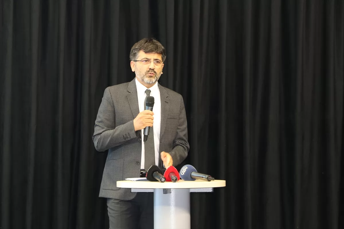DÜ 15 Temmuz Kültür ve Kongre Merkezi'nde düzenlenen basın toplantısında konuşan Rektör Prof. Dr. Mehmet Karakoç, 6 Şubat'taki depremlerde hayatını kaybeden tüm vatandaşlara Allah'tan rahmet, yakınlarına sabır, yaralılara şifa diledi.