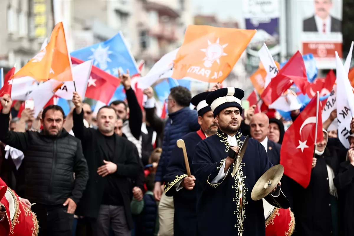 Kervan Kavşağı'nda toplanan partililer, mehter takımı eşliğinde İstanbul Caddesi boyunca yürüyerek Anıtpark Meydanı'na geldi.