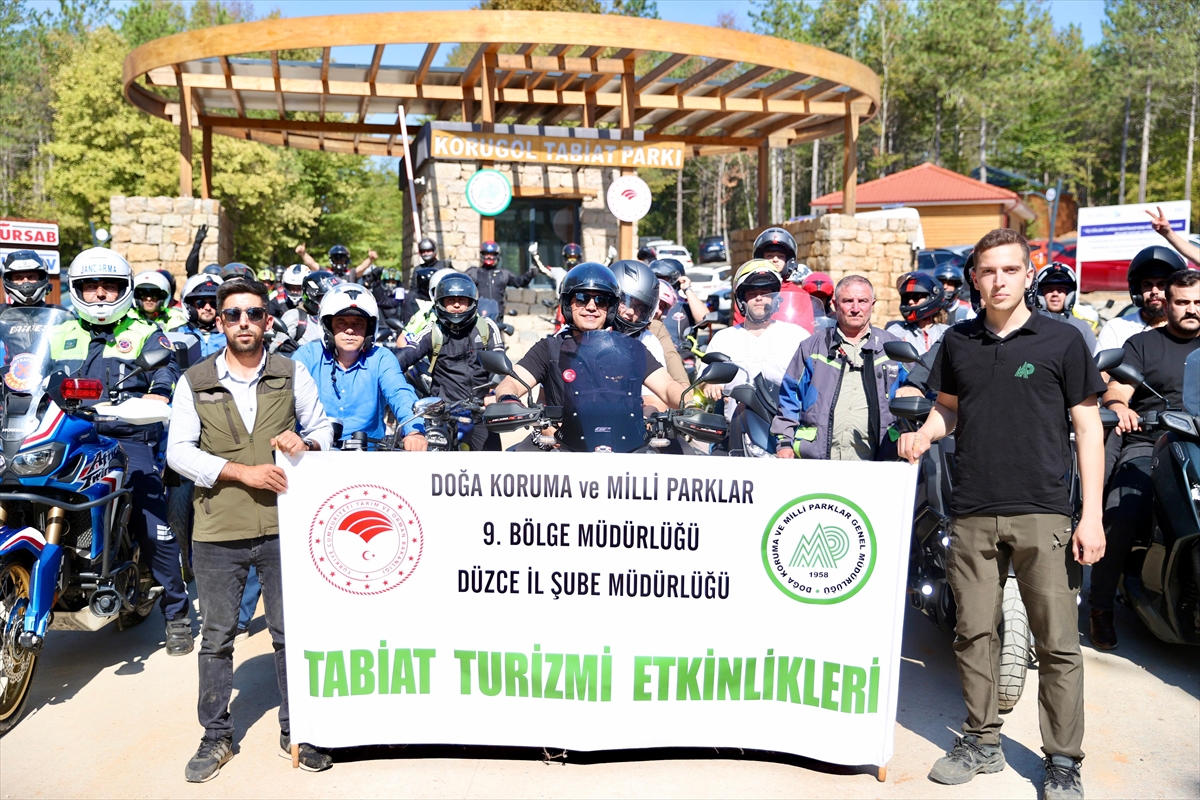 DÜZCE (AA) – Düzce'de güvenli sürüşe dikkati çekmek isteyen motosiklet tutkunları, Vali Selçuk Aslan ile konvoy oluşturup Korugöl Tabiat Parkı'nı turladı.
